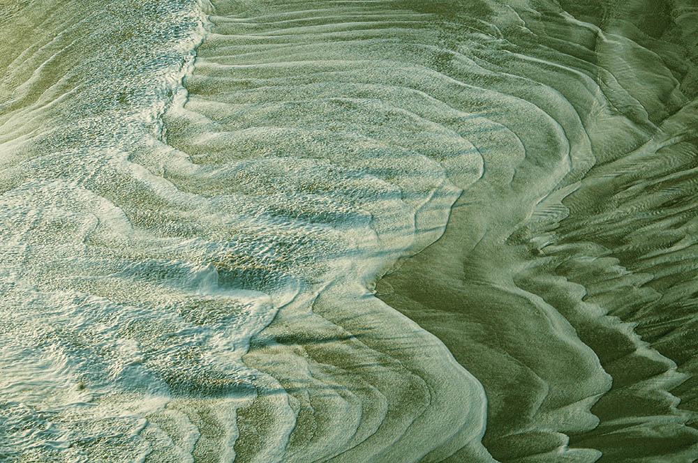 Estaban dragando las inmediaciones de la playa del Orzán, extrayendo arena del fondo para las obras del Puerto Exterior, y toda la zona se llenó de unas formas y colores (exagerados y transformados en la edición) rarísimos y en ocasiones muy bellos. Nunca hemos vuelto a ver la zona con la apariencia de entonces. Esto es -casi- fotografía histórica. Edición transformadora del colorido