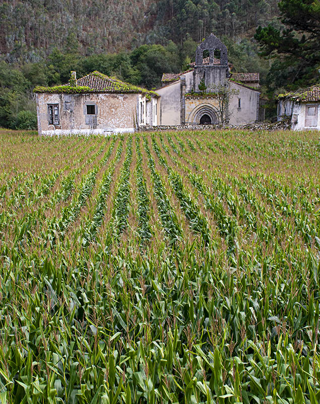 El monasterio benedictino de S. Antolín de Bedón, fue erigido en la desembocadura del río homónimo, en estilo románico cisterciense, de transición al gótico. Se halla en una situación lejos de ser propicia para su visita. Se encuentra en medio de una plantación de maíz, como se puede contemplar en la imagen, y sólo se puede acceder a sus ruinas de julio a noviembre. En la edición se potenció la intensidad de los verdes y amarillos