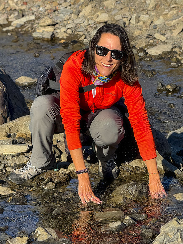 Mi prima más querida, mi prima aventurera, mi prima viajera. Ella fue quien me acompañó en este tremendo y exigente viaje a Islandia, y con quien conviví en paz y armonía las dos semanas del periplo nórdico. Aquí la vemos en una actitud bien característica suya, porque a ella no le vale sólo ver, tiene que tocar, y bajar al agua y captar las texturas, la dificultad. Conocimiento de primera mano, sin intermediarios. Un cielo, mi prima. Mínima edición