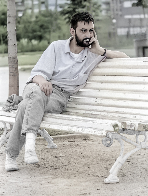 Otro de mis amigos importantes en la etapa posterior a mi licenciatura. Confidente infatigable, amigo fiel, excelente persona, pareja de frontenis, pero aquejado de un carácter indolente a la par que hedonista que no le hicieron ningún bien a nivel global. Ojalá se encuentre todo lo bien que yo le deseo. En la edición, tras escanear el negativo original en B/N, se restauraron los desperfectos y, finalmente se coloreó ligeramente