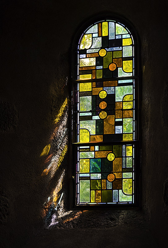 Vidriera de una de las iglesias de este sorprendente pueblo auvernés, cuya luz tamizada, proyectada en uno de sus laterales, inducía a la reflexión, al recogimiento, al rezo incluso. No llegamos a rezar, pero sí a admirar cómo la luz puede modificar de inmediato un estado de ánimo. Mínima edición