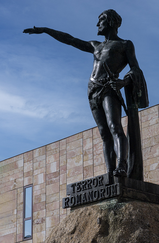Esta escultura en bronce del artista zamorano Eduardo Barrón González, de dos metros de altura, se ubica en pleno centro de la ciudad. Conmemora al pastor-caudillo lusitano que, con una original guerra de desgaste que luego se llamaría guerrilla, hostigó y dificultó sobremanera la conquista de la zona por parte de las tropas romanas. La leyenda que figura al pie (Terror de los romanos) es atribuida al teólogo e historiador hispano-luso Paulo Orosio en el s. IV, si bien Viriato vivió en el s. II a. C.. Mínima edición