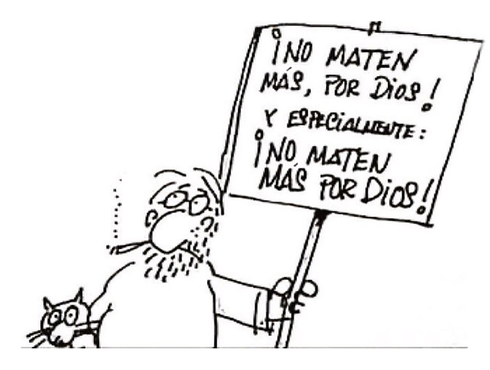 Hace años, yo adoraba al Perich. Hoy, he vuelto a él, porque en un artículo que estaba leyendo se le mencionaba. Al acabar, cogí uno de sus libros, y me puse a mirar sus viñetas tremendas de intuición, claridad, contundencia y coraje. Me sorprendió la modernidad de todo cuanto decía. Me chocó comprobar que si colocáramos viñetas de entonces en noticias de hoy, no habrían perdido ni un ápice de actualidad, ni un gramo de su intensa calidad. Ved, si no, este ejemplo extraído de Google imágenes -cómo no-. Y captad su extraordinaria capacidad de penetración, que llega hasta el punto de la sutileza de la coma, que da todo el sentido a la pancarta que exhibe el peticionario.