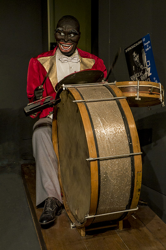 Sin embargo, en el Musée de l’Automat de Souillac, los muñecos no inspiran ese temor reverencial que de siempre han sugerido. Al contrario, el ambiente lúdico, risueño, festivo, acaso melancólico en ocasiones, pero jamás terrorífico, es lo que prima en sus bien nutridas vitrinas, ofrecidas al espectador con mimo y buen gusto. Este batería de jazz, integrante de una deliciosa “jam session band”, es un buen ejemplo de lo que digo. Y si por algún asomo, esa mirada y esa bocaza abierta de dientes tan contrastados nos pudiera aproximar alguna inquietud, pensemos que lo que estaban tocando era algo de John Coltrane, o de Miles Davis, y se nos disuelve enseguida la tontería ancestral.