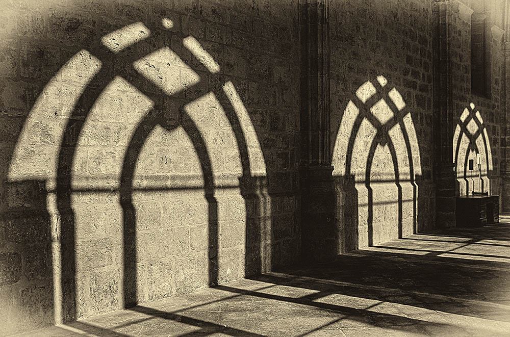 Este claustro no es de los más bellos que albergo en la memoria. Pero cuando volví a ver la foto, me trajo recuerdos de otros que sí lo son y donde también, como en este caso, leí algunas líneas de algunos poetas de silencios silábicos y estremecidas pausas con que aliñar la soledad y la meditación. Ahora, así, con rapidez, se suceden fugazmente ante los ojos memoriosos unos cuantos franceses, varios españoles y alguno que otro portugués. En ellos, el librito acompañaba la bolsa de fotos y ninguno de ellos se entendía sin el compañero. Se complementaban de la manera más simbiótica posible. Y algunas imágenes que capturé no se entenderían sin las palabras leídas en voz baja, pero audible, de algunos autores a quienes quise homenajear en mis visitas. Particularmente emotivas fueron las lecturas de Pessoa en los Jerónimos, de Julio Llamazares en Santillana del Mar, de Caballero Bonald en Silos o de Yourcenar en Moissac. Escandir sus versos o su prosa poética en semejantes escenarios ha sido una más de las felicidades que me han procurado la combinación de arte y literatura, sin que ninguna se resienta; antes al contrario, amparándose una en la otra, me han hecho alcanzar alturas inimaginadas. Sea así por muchos años, por muchas veces, por muchos versos, en muchos claustros.