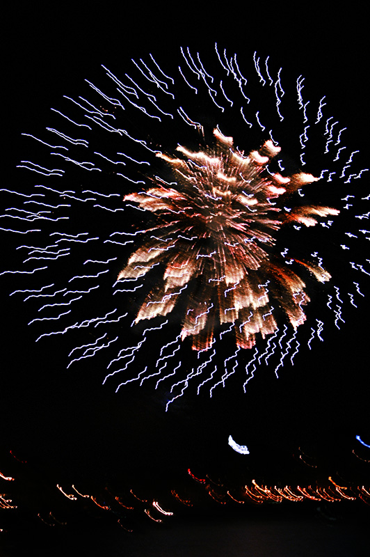 Porque nos gusta el fuego, porque nos atrae la noche, porque nos encanta que nos sorprendan, porque no sabemos cuándo va a estallar el color, porque el olor a pólvora que queda en el ambiente nos conecta con pasados más violentos, porque suponen una victoria técnica del hombre frente al medio, porque el ruido y los fogonazos son como tormentas polícromas bajo control, porque los reflejos del magnesio transfiguran nuestros rostros durante unos instantes, porque el reflejo en las aguas dota a esas figuras de una duplicidad hipnótica, porque nos impulsa a capturar en imágenes estáticas lo que por definición es volátil y cambiante, porque nos gusta imaginar formas reconocibles donde no existen, porque es un modo de estar muchos juntos mirando algo al unísono, porque nos encanta ser convocados y acudir en masa, porque nos fascina tomar como real lo que no lo es, porque albergamos un yo estético o artístico que es capaz de transigir con que lo no útil pueda sobrepujar a lo necesario durante media hora al menos, porque podemos observar palmeras luminosas en lugares donde no hay ni de las vegetales, porque nos encanta comprobar cuán efímera es la belleza a la par que nuestra vida continúa tras el espectáculo, porque mirar al cielo durante un buen rato nos recuerda los tiempos en que aún implorábamos a los dioses, porque aún albergamos el niño que un día fuimos, porque nos conmueve el temblor del aire en las pupilas…