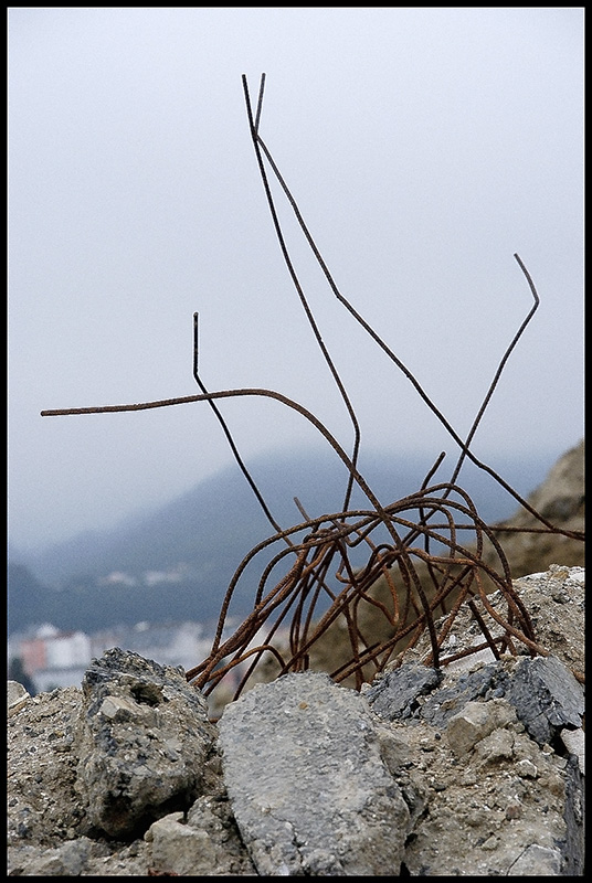 Obsérvese, si no, en esta escultura hallada en una zona ruinosa de un puerto en obras. Admírese la alargada forma de los materiales de metal que se proyectan hacia el cielo en retorcida pose no exenta de orden que el artista ha diseñado con anterioridad. Las formas resultantes nos recuerdan a Julio González aunque de forma algo más tosca, al que se le añaden pinceladas de Calder, pero sin su movilidad. Pero la cosa no acaba ahí, sino que la base proporciona al conjunto una solidez como sólo el hormigón armado y el asfalto combinados pueden ofrecernos. De tal modo que si por un lado la estructura triangular del conjunto nos habla de movimiento, acción, inestabilidad, los materiales empleados nos susurran al oído que la tierra está en la base de todo, y que el arte, manifestación suprema del Espíritu, sobrevivirá tanto tiempo como las montañas que se adivinan al fondo. Y aún podríamos decir más cosas, pero al fin y a la postre, lo que resta es la hermosura que nos instila la mezcla. ¡Ah!, qué de belleza nos proporciona por doquier el Arte Contemporáneo. Y gratis, además. Ejem.