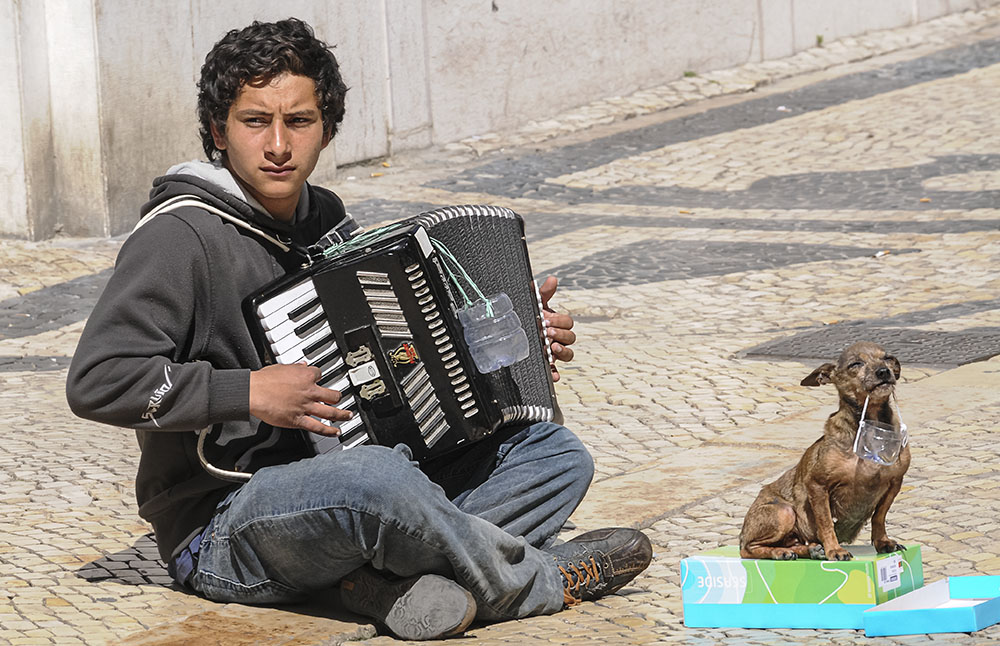 De modo que tenemos a un adolescente que toca el acordeón (y lo hacía bien, lo cual no es poco mérito, teniendo en cuenta lo que es habitual en los músicos callejeros, dado que no resulta un instrumento que se deje domesticar con facilidad). Y tenemos también a un animal que le sirve de ayuda en el cometido de recoger el dinero que los viandantes echamos como recompensa por tan acertadas y alegres notas. La escena no tiene a primera vista nada de excesiva, ni de grotesca, ni de esperpéntica. Sin embargo, esconde un debate que una amiga mía apreció, enseguida de ver la imagen: la explotación animal.